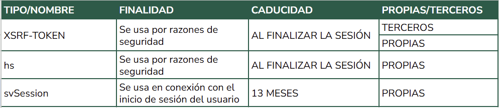 A continuación, y con el objetivo de que pueda prestar un consentimiento plenamente informado, le detallamos la información de en qué consiste y cuál es la finalidad de cada tipo de cookie: